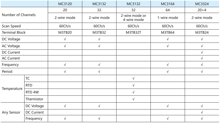 M300은 여러 모듈 옵션을 제공합니다. DMM의 경우 최대 64개 채널에서 단일 종단 측정을 수행할 수 있는 모듈이 있습니다. 20개 또는 32개 채널의 차동 측정. 20개 전압 채널과 4개 전류 채널을 갖춘 모듈도 있습니다.